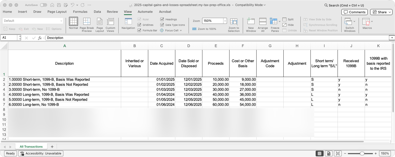 NOTE: If the My TAX Prep Office spreadsheet format has changed from the format shown above (including support for sales of digital assets), let us know the details and we will update our app within one business day.